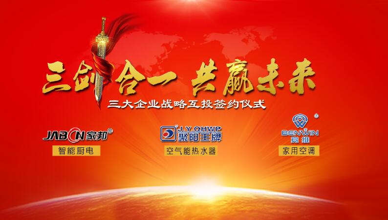 2020年4月2日,聚陽(yáng)(空氣能)、家邦(廚電)、賓維(空調(diào))三大企業(yè)“三劍合一,共贏未來(lái)”戰(zhàn)略互投簽約儀式在聚陽(yáng)公司內(nèi)部圓滿舉行!