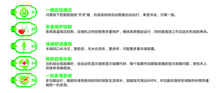 全熱回收技術(shù):在夏季制冷運行時,通過全熱回收技術(shù)將原來排放至環(huán)境中的熱量全部回收,用來加熱生活熱水,既緩解了熱導(dǎo)效應(yīng)又降低了熱水的費用,達到節(jié)能降耗的目的。