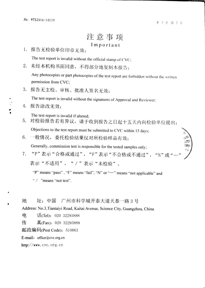國家日用電器質(zhì)量監(jiān)督檢驗(yàn)中心檢出具的檢驗(yàn)合格報告