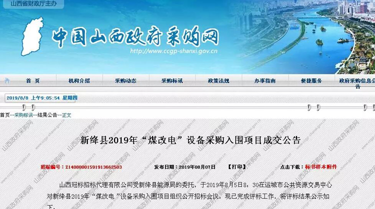 項(xiàng)目名稱:新絳縣2019年“煤改電”設(shè)備采購(gòu)入圍項(xiàng)目